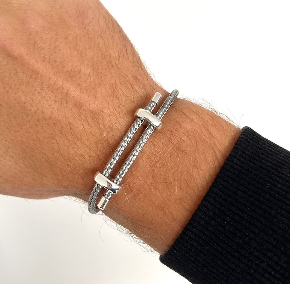 The Amara Helix Bracelet features a sleek double-line design with polished metal accents. Its modern and minimal look makes it easy to wear every day — on its own or combined with other pieces.